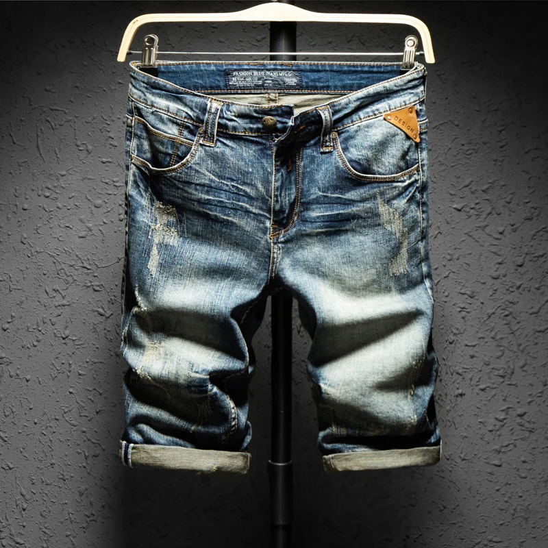 Name: SHANBAO tendencia de los hombres novedad de verano denim Pantalones cortos de mezclilla retro estilo antiguo de diseñador de cuero delgada agujero recto Short de dénim de algodón